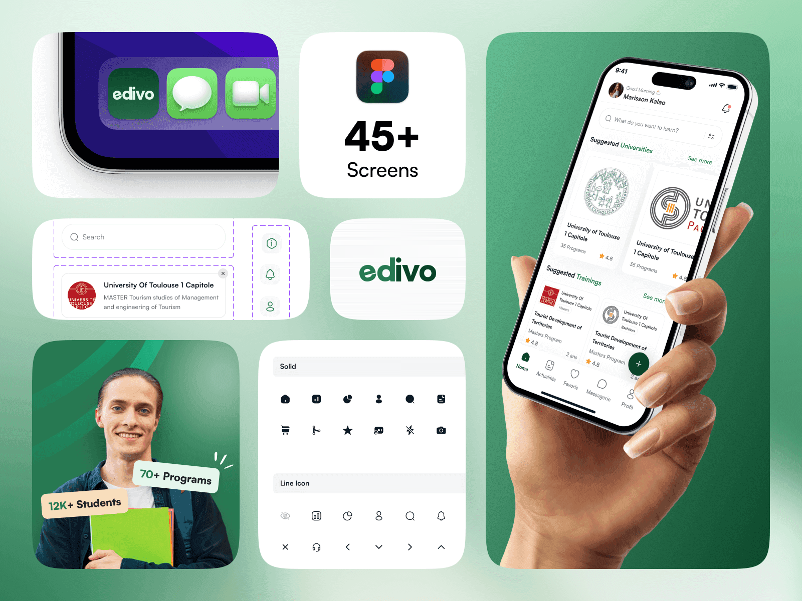 Comprehensive Redesign: Overhauled 42 screens of the Edivo app, refining each element for improved usability and aesthetics.